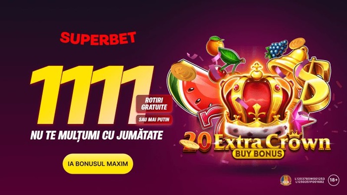 Deschide-ți cont luna aceasta la Superbet și profită de bonusul fără depunere disponibil! Activează 311 de rotiri gratuite pentru slotul „20 Extra Crown Buy Bonus” până la data de 14 mai 2026. Tot ce trebuie să faci pentru a te bucura de bonusul Superbet este să îți deschizi cont, să îți verifici telefonul și să parcurgi procesul KYC. După o primă depunere de minim 20 RON, primești alte 800 de rotiri gratuite, cu cerință de rulaj 1x, dacă depui în ziua înregistrării, sau alte 400 de runde gratuite dacă faci prima depunere în zilele următoare.